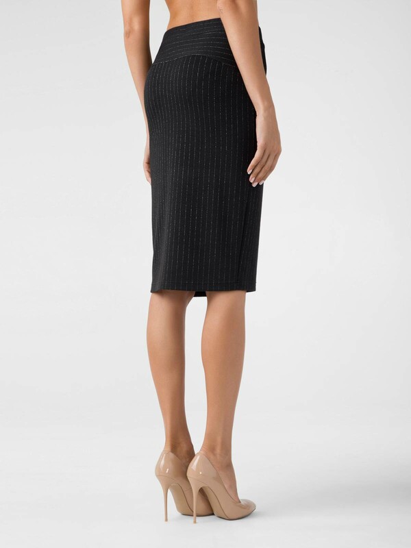 Элегантная юбка-футляр MADAME из вискозного трикотажного полотна с легким мерцанием люрекса прекрасно подходит для всех типов фигуры. Облегающий крой и вертикальные полосы мерцающего люрекса выгодно подчеркивают силуэт, визуально удлиняют ноги и делают талию заметно тоньше. · высокая посадка;· длина midi;· облегающий силуэт;· эластичный пояс;· моделирующий эффект; · полотно с вискозой премиального качества;· легкое мерцание люрекса;· сохранение формы и цвета при соблюдении рекомендаций по уходу;· современная классика для повседневного и офисного гардероба.