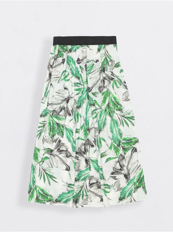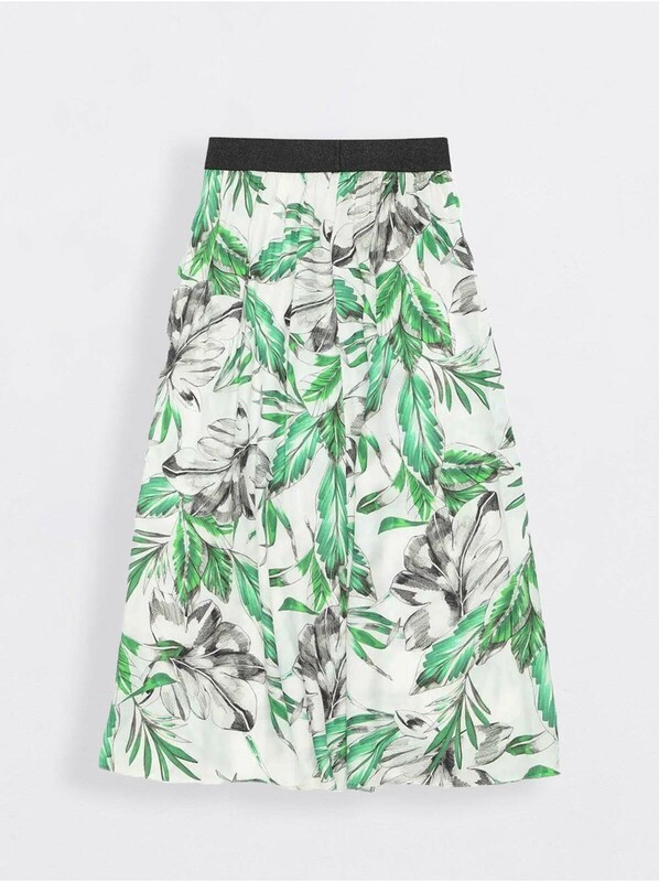 Юбка Blossom с цветочным рисунком станет любимой вещью девушки в жаркий летний день: полотно из вискозы практически невесомое, легкое, дышащее и тактильно приятное. А-силуэт, контрастный эластичный пояс, деликатная плиссировка и свободная посадка по фигуре – то, что нужно для свежего летнего образа. SILK TOUCH VISCOSE: премиальная вискоза «Ощущение шелка» подарит мягкость и комфорт на протяжении всего дня. · высокая посадка· свободный A-силуэт· длина midi· контрастный эластичный пояс· легкое струящееся полотно· деликатная плиссировка· вискоза премиального качества «Ощущение шелка»· цветочный рисунок· сохранение формы и цвета при соблюдении рекомендаций по уходу· то, что нужно для свежего летнего образа· создайте total look с блузкой LBL 1103.