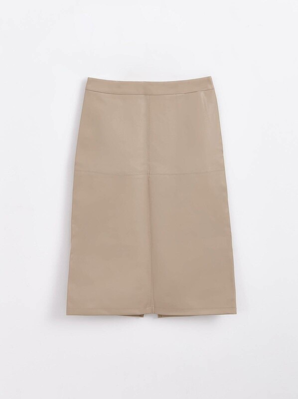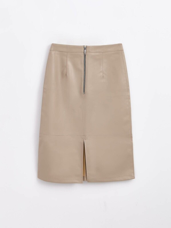 Юбка прямого силуэта «под кожу» LU 1410 подчеркивает силуэт, визуально удлиняет ноги и делает талию заметно тоньше. Благодаря плотному полотну юбка прекрасно сидит по фигуре, не теряет форму и дарит ощущение комфорта в течение дня. Для создания бунтарского посыла и скрытой сексуальности рекомендуем дополнить образ oversize-пуловером. Для повседневного гардероба выбирайте базовый джемпер или рубашку. · высокая посадка на талии· длина midi· прямой силуэт· плотное облегание по талии и бедрам· застёжка сзади на металлическую молнию· рельефные линии· интригующий разрез сзади· напыление «под кожу· сохранение формы и цвета при соблюдении рекомендаций по уходу· создана, чтобы стать основной для множества стильных образов.