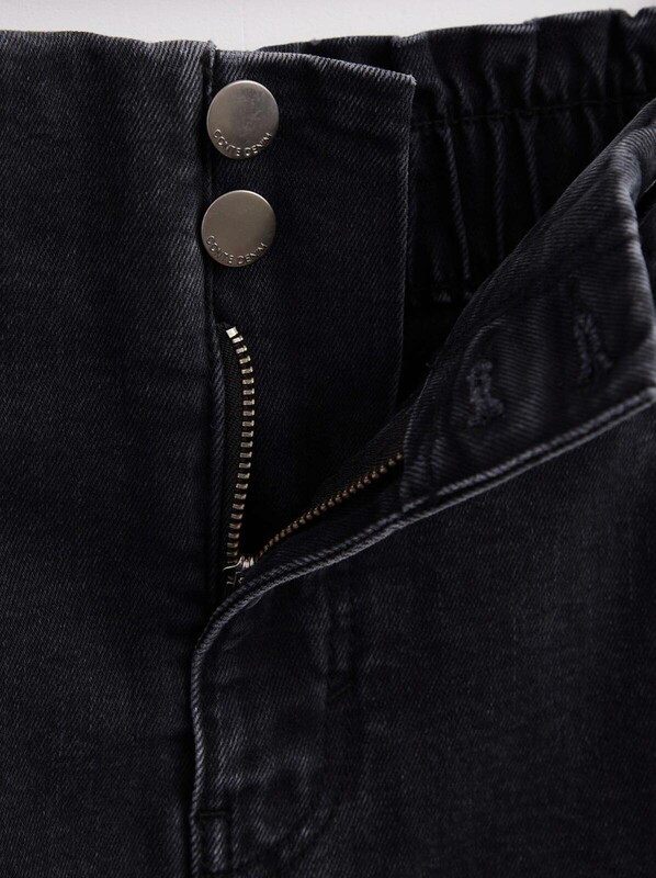 • застежка на две пуговицы с логотипом бренда и молнию, скрытую планкой