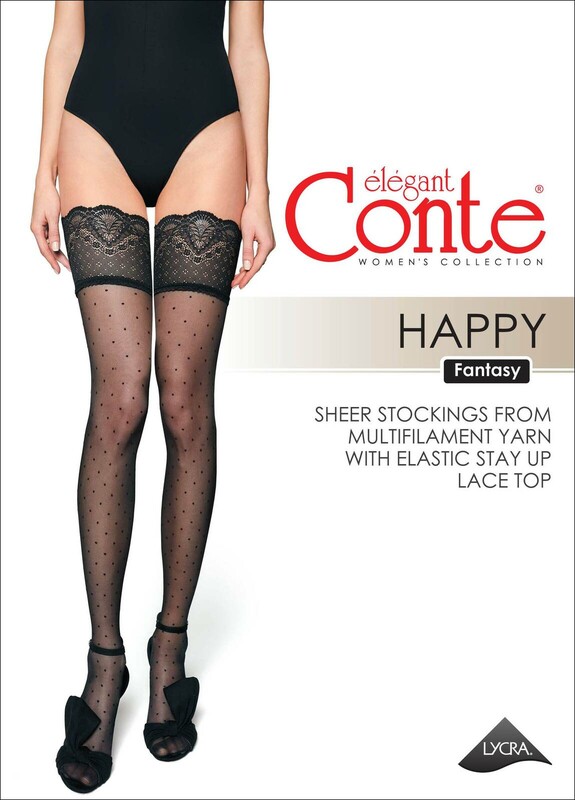 Чулки женские CONTE Чулки в горошек с ажурной резинкой HAPPY