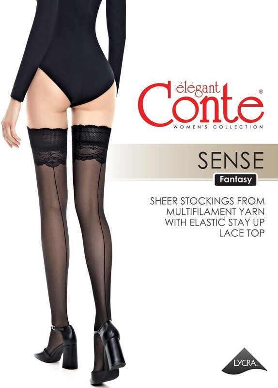 Тонкие эластичные фантазийные чулки 20 den с самоподдерживающейся кружевной резинкой. Рисунок:имитация ажурной резинке со швом, расположенным сзади ноги. полиамид 90%, эластан 10%
