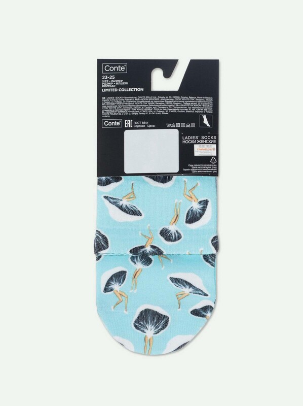 Укороченные носки Fantasy с хлопком и печатными рисунками так оригинальны, что вам захочется включить в свой гардероб всю коллекцию. Будьте готовы к стильным экспериментам!Эксклюзивно в фирменных магазинах Conte и онлайн в интернет-магазине conteshop. com· укороченная модель· универсальный размер· эластичный рельефный паголенок-резинка· фантазийный печатный рисунок · мягкое и эластичное полотно с хлопком· лимитированная коллекция.