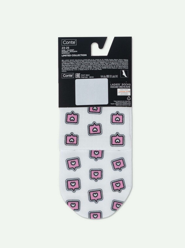 Укороченные носки Fantasy с хлопком и печатными рисунками так оригинальны, что вам захочется включить в свой гардероб всю коллекцию. Будьте готовы к стильным экспериментам!Эксклюзивно в фирменных магазинах Conte и онлайн в интернет-магазине conteshop. com· укороченная модель· универсальный размер· эластичный рельефный паголенок-резинка· фантазийный печатный рисунок · мягкое и эластичное полотно с хлопком· лимитированная коллекция.