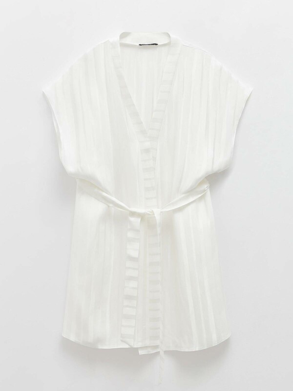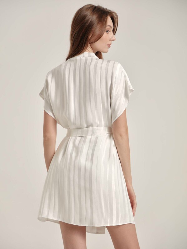 Халат классического кроя из вискозы с атласными полосами LHW 1703 – эффектный и при этом комфортный вариант для стильного домашнего гардероба. SILK TOUCH VISCOSE: премиальная вискоза с эффектом «ощущение шелка» подарит мягкость и комфорт на протяжении всего дня. · классический крой на запах· пояс в комплекте· без рукавов· длина mini· вискоза премиального качества · полотно с атласными вертикальными полосами· сохранение формы и цвета при соблюдении рекомендаций по уходу· эффектный и комфортный вариант для стильного домашнего гардероба. вискоза 100%