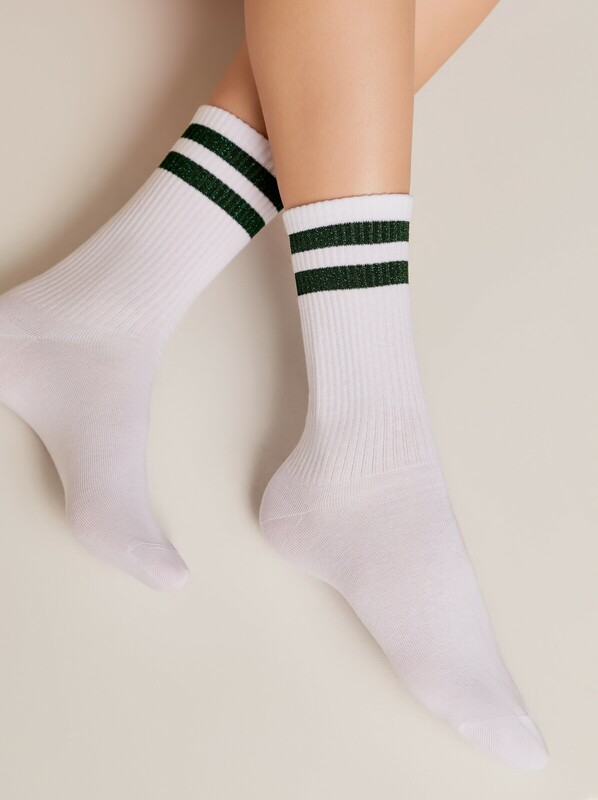Удлиненные CONTE ACTIVE Хлопковые носки с яркими полосками из люрекса