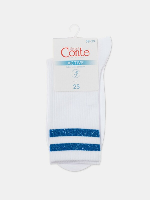 Удлиненные CONTE ACTIVE Хлопковые носки с яркими полосками из люрекса