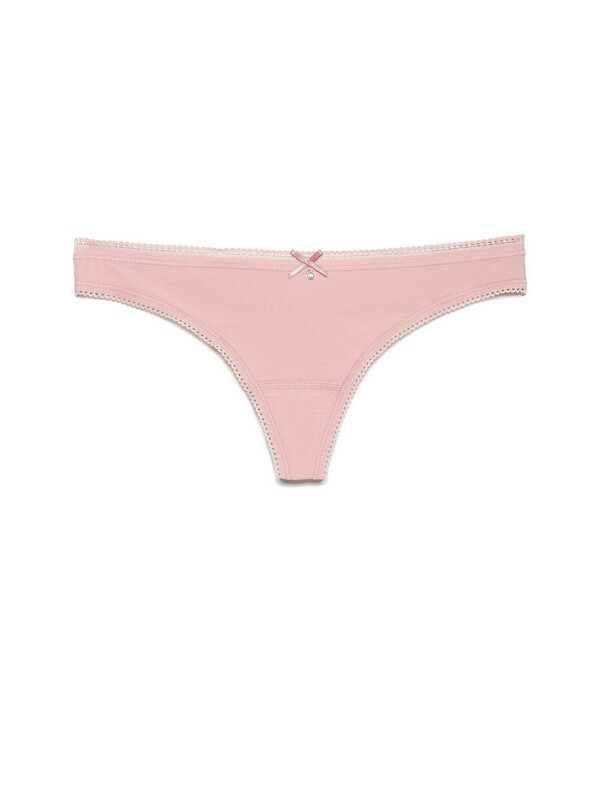 Однотонные трусы "стринг" сделаны из удобного, приятного к телу и практичного трикотажа с высоким содержанием хлопка. Комфортное, дышащее и устойчивое к многочисленным стиркам белье станет Вашим любимым повседневным вариантом. Трусики украшены на талии и ножках эластичной тесьмой. Верх дополнен небольшим декоративным бантиком. Преимущества модели: - эластичная тесьма на талии и бедрах для дополнительного комфорта- приятный к телу трикотаж с высоким содержанием хлопка.