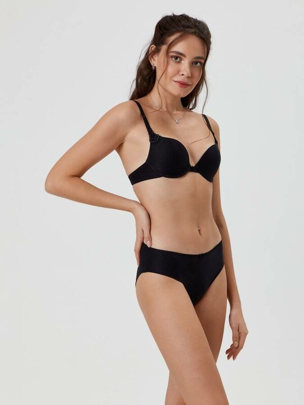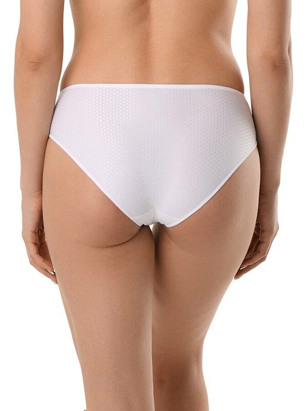 Трусики "слип" VOYAGE отличаются чистотой линий и исключительным комфортом. Выполненные из полотна с деликатным жаккардовым рисунком «в горошек» и украшенные аппликацией макраме, трусики помогут создать одновременно простой и утонченный образ. Преимущества модели:- средняя линия талии;- хлопковая ластовица; - верхний и нижние срезы обработаны плоским швом.