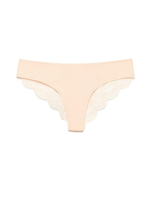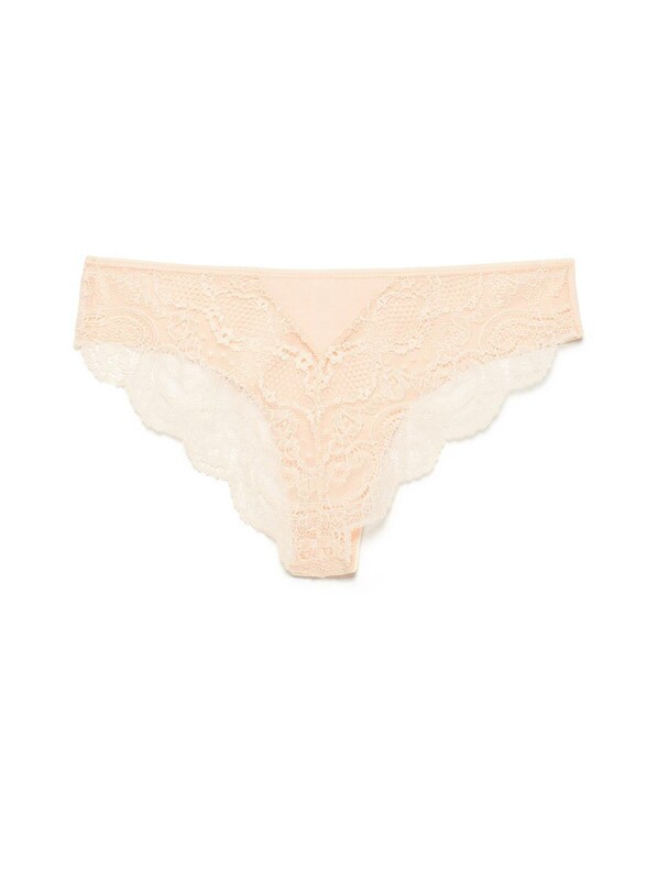 Трусы женские из трикотажного полотна, комбинированные. Ластовица цельнокроенная с передней деталью. Задняя деталь кружевная , состаит из двух частей. По центру задней детали в верхней части треугольная вставка из трикотажного полотна. Талия и ножки обработаны узкой эластичной тесьмой плоским швом.