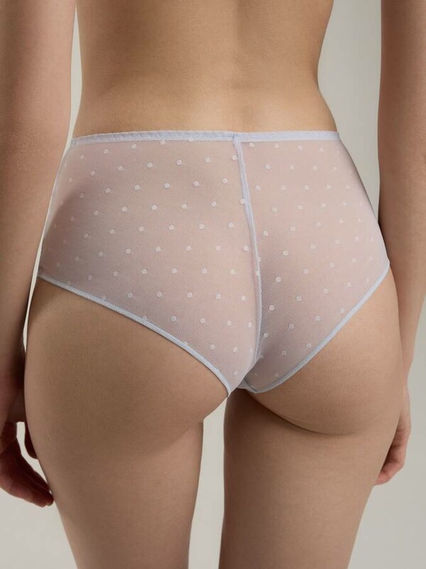 Изящное, выразительное и немного провокационное белье Flirt создано из романтичного цветочного кружева и сетчатого полотна в мелкий горошек. В качестве декора используются тонкие ленты из эластичной органзы и воздушные бантики, которые подчеркивают торжественность серии и создают кокетливый образ. • hipster • средняя посадка • нижние срезы обработаны плоским швом • цветочное кружево и сетчатое полотно в мелкий горошек • декор из эластичной органзы и воздушного бантика • изящное, выразительное и немного провокационное белье хлопок 100%, полиамид 79%, эластан 21%
