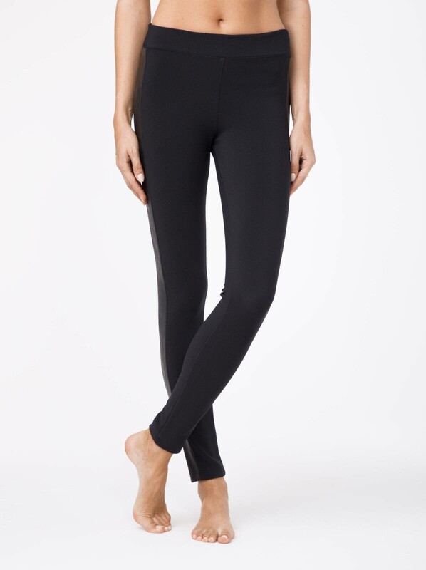 Классические леггинсы для женщин выполнены из прочного эластичного полотна в «рубчик». Облегающий крой, эластичный , широкий пояс по талии обеспечивает максимальную свободу движения, а лампас из кожи по боку вдоль ножки подчеркивает и в тоже время удлиняет линию ног. Комбинируются с любыми изделиями, позволяя фантазировать и создавать яркие модные образы, поэтому являются незаменимым предметом в гардеробе каждой женщины!