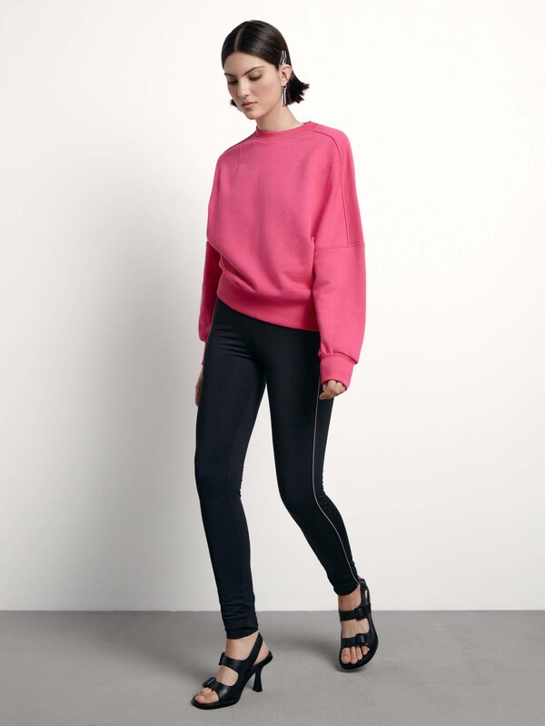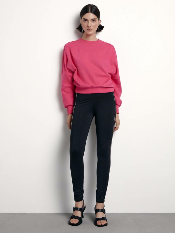 Леггинсы из плотного полотна с кожаными вставками по бокам подчеркивают фигуру и не теряют форму в течения дня. Леггинсы отлично сочетаются с рубашками, джемперами и свитерами. Советуем заправить верх полностью или немного спереди, чтобы подчеркнуть талию и показать оригинальные застежки-молнии. · высокая посадка· skinny· притачной пояс с эластичной тесьмой внутри· в боковые швы вставлен кожаный кант, имитирующий лампасы· плотное полотно · сохранение формы и цвета при соблюдении рекомендаций по уходу· созданы, чтобы стать основной для множества стильных образов.