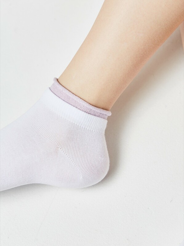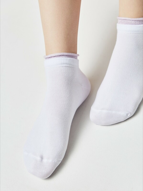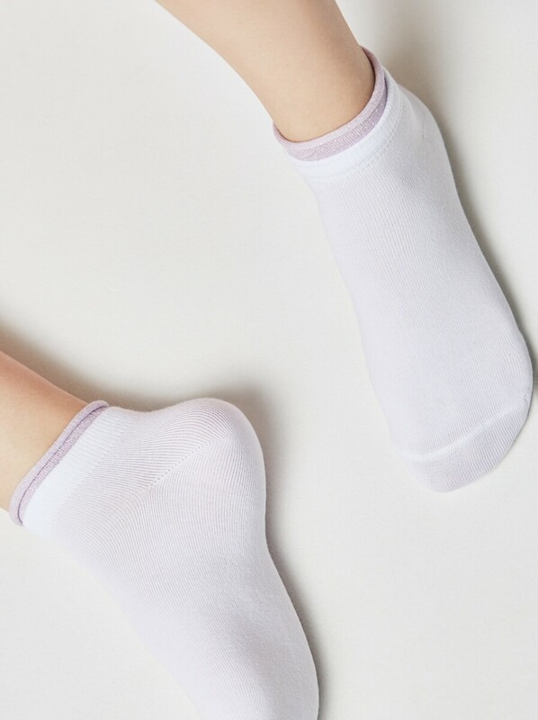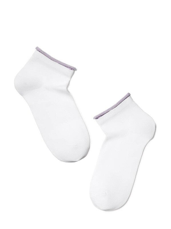 Укороченные спортивные женские носки из хлопка, однотонные с контрастной декоративной отделкой по краю резинки.