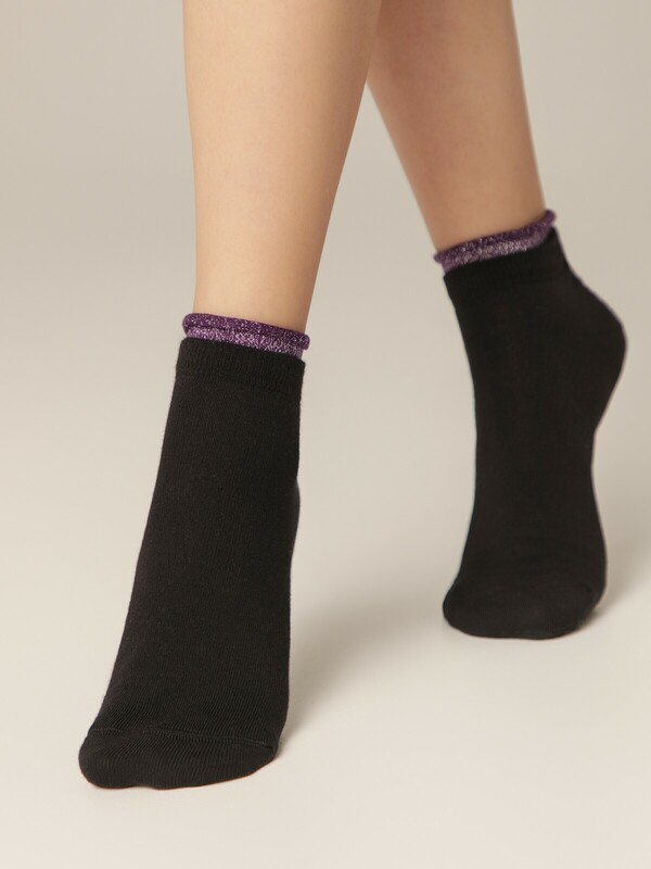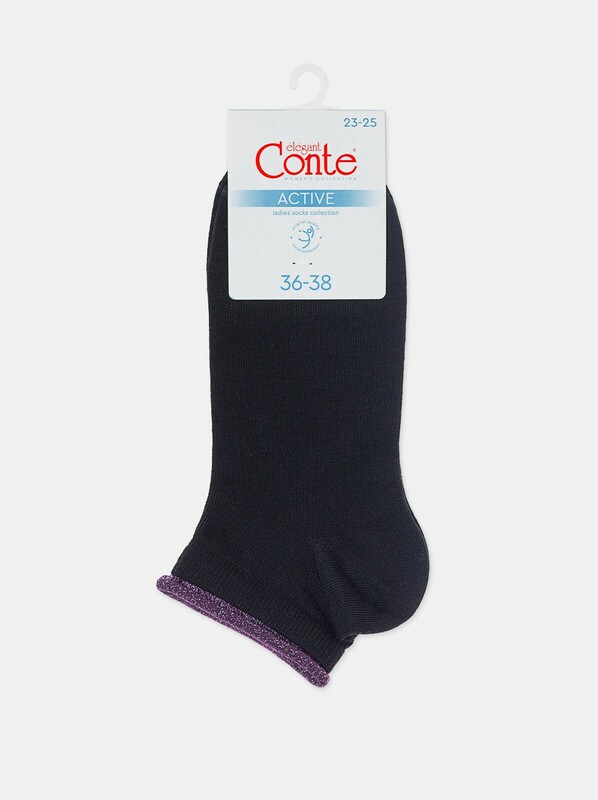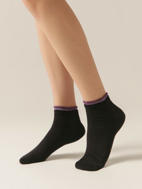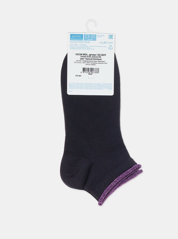 Укороченные спортивные женские носки из хлопка, однотонные с контрастной декоративной отделкой по краю резинки.