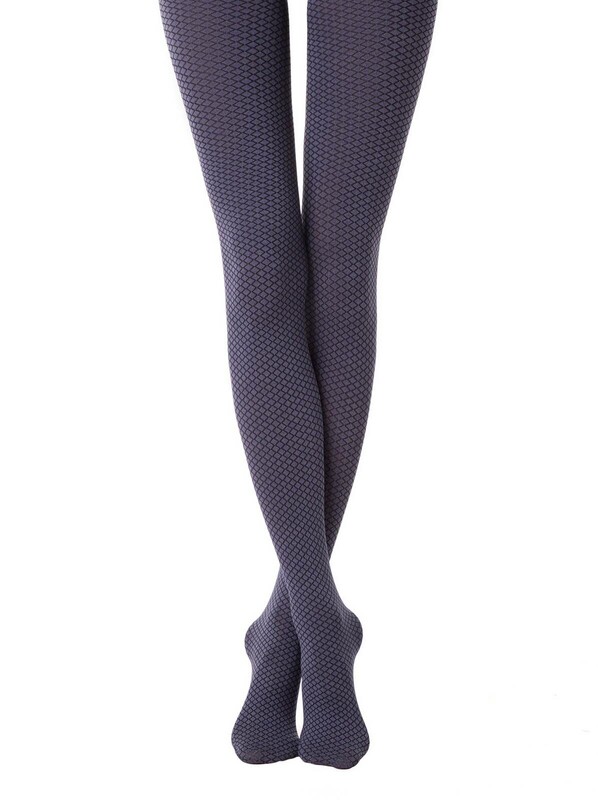 Плотные меланжевые фантазийные колготки, рисунок - ромбы, эффект 3D, плоский шов, хлопковая ластовица