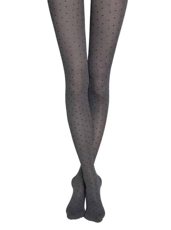 Меланжевые колготки с рисунком «треугольники» EFFECT созданы для стильных повседневных и офисных образов. Модель легко сочетается с вещами базового гардероба и любой обувью.