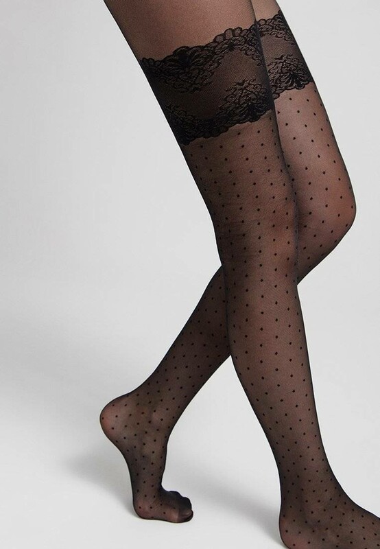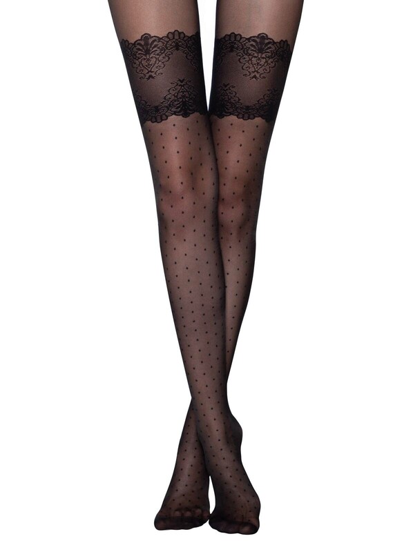 Колготки в точку с имитацией чулок c ажурной резинкой Seduction – модель, которая гарантированно привлечет внимание к красоте ног и подарит абсолютную уверенность в себе. • 20 den • рисунок «в точку» • имитация чулок с ажурной резинкой • тонкое и эластичное полотно • идеальное облегание • плоский шов • хлопковая ластовица • укрепленный мысок • созданы для соблазнительных образов. полиамид 90%, эластан 10%