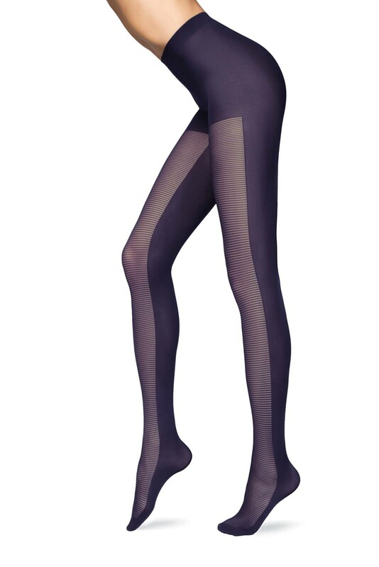 Плотные фантазийные колготки с рисунком "горизонтальные полоски" по передней части ноги, плоский шов, хлопковая ластовица.