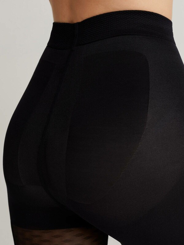 Колготки с уникальной конструкцией торса «7 зон» X-Press 40 равномерно уменьшают проблемные зоны бедер, талии и живота минимум на 1 размер. Специальные эластичные поддерживающие вставки создают эффект push-up для ягодиц, делая их более подтянутыми и округлыми.