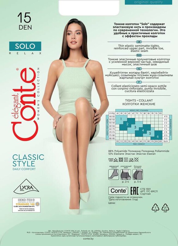 Колготки женские CONTE SOLO 15 Полуматовые колготки с усиленным торсом