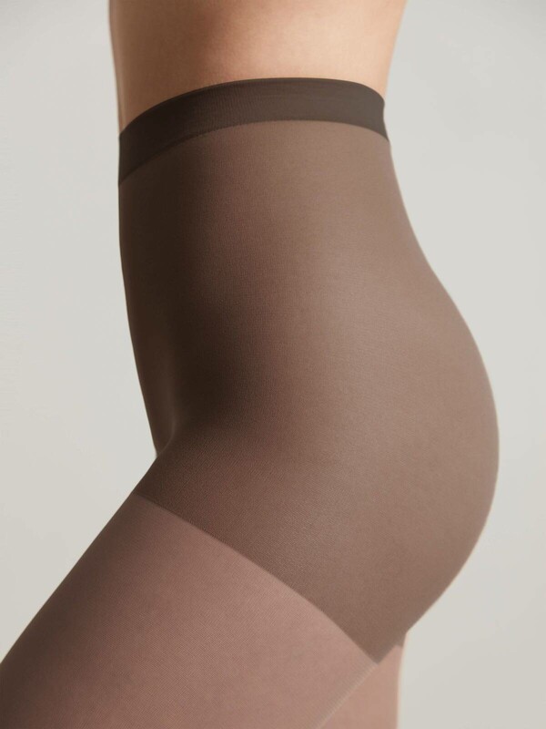 Матовые полупрозрачные колготки IDEAL связаны из мультифиламентных нитей с текстурированной поверхностью и эффектом "ultimate matt". Полотно создает особый эффект пудры, который маскирует мелкие несовершенства и делает кожу ног идеальной. Усиленная верхняя часть с мягкой компрессией формирует линию талии и бедер, подчеркивая силуэт.