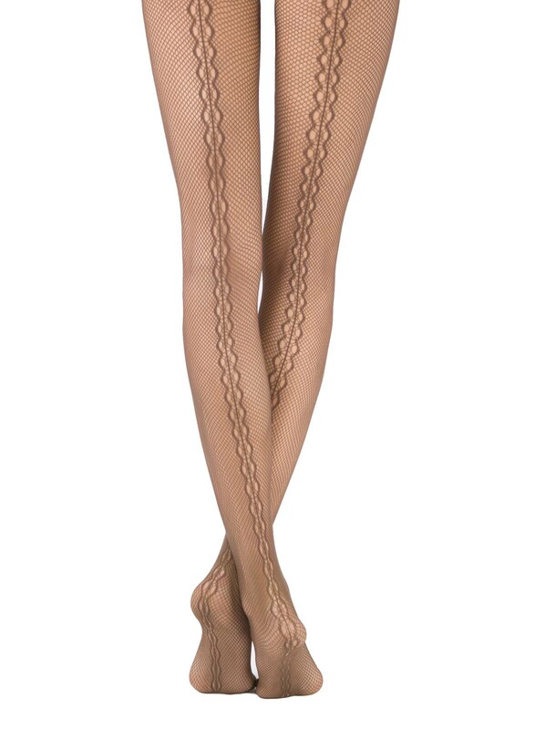Эластичные фантазийные сетчатые колготки с вертикальным рисунком "косичка" сзади вдоль ноги, без швов, с ластовицей