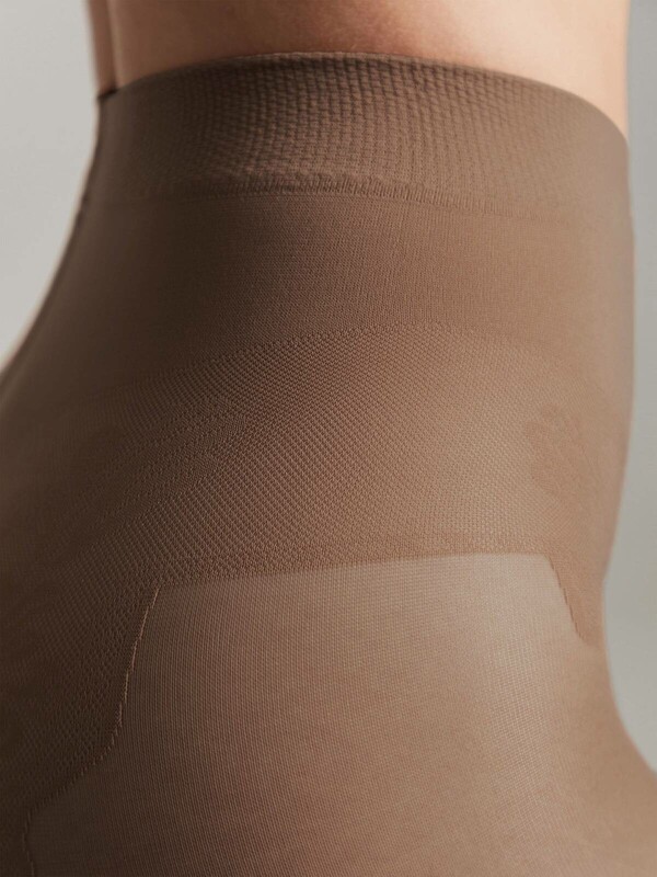 Полупрозрачные колготки BIKINI с легким блеском и имитацией ажурного нижнего белья связаны из инновационных нитей с улучшенными тактильными свойствами. Шелковистые и чрезвычайно мягкие, колготки BIKINI идеально подходят для чувствительной кожи.