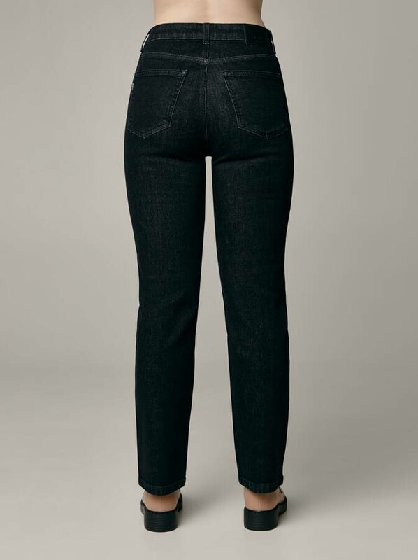 Джинсы с высокой посадкой из плотного, но эластичного денима красиво и комфортно садятся по фигуре, не добавляя силуэту ненужный объем. Eco-friendly: при изготовлении этих джинсов применяются технологии, позволяющие использовать меньше химикатов, воды и электроэнергии, чем при производстве традиционного денима.