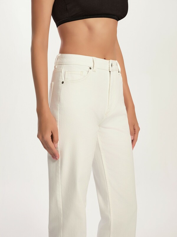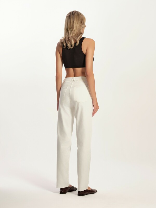 Джинсы straight с необработанным краем – это классическая летняя базовая модель, которая отлично дополнит ваши образы. Вискоза в составе придаёт джинсам лёгкость и улучшает воздухопроницаемость, что делает их идеальным выбором для тёплого сезона. • straight - прямой крой • комфортная посадка • лёгкий и мягкий деним молочного цвета • 5 функциональных карманов • необработанный край • оригинальная задняя шлёвка • фурнитура серебристого цвета • застёжка на металлическую пуговицу и молнию, скрытую планкой • для сохранения формы джинсов и насыщенности оттенка соблюдайте рекомендации по уходу • созданы для ваших стильных летних капсул Рост 164: длина по внутреннему шву 77 см Рост 170: длина по внутреннему шву 82 см Состав: 77% хлопок, 13% вискоза, 8% полиэстер, 2% спандекс Цвет: off white bumbac 77%, viscoza 13%, poliester 8%, spandex 2%