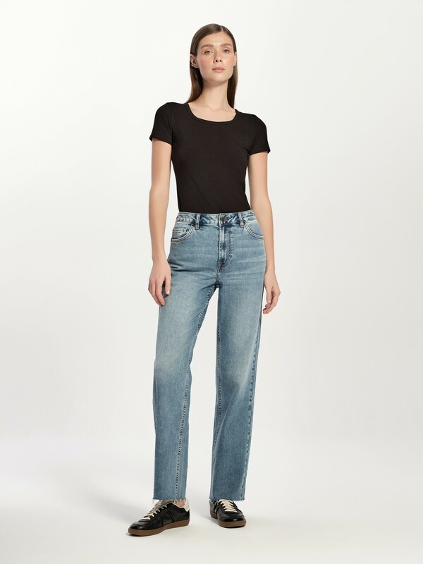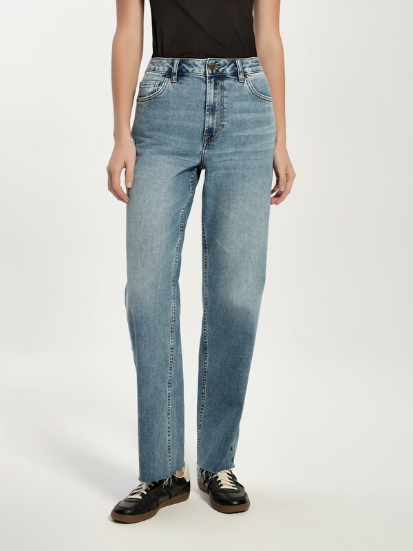 Джинсы straight станут идеальной основой для расслабленных образов. Необработанный край, эффект потертостей, контрастная строчка помогут создать интересный винтажный образ и подчеркнут оригинальность вашего стиля.
