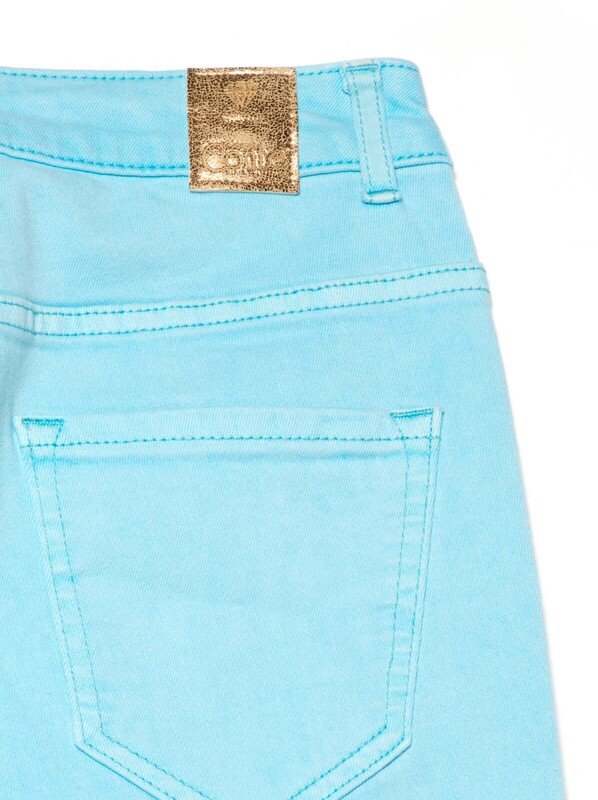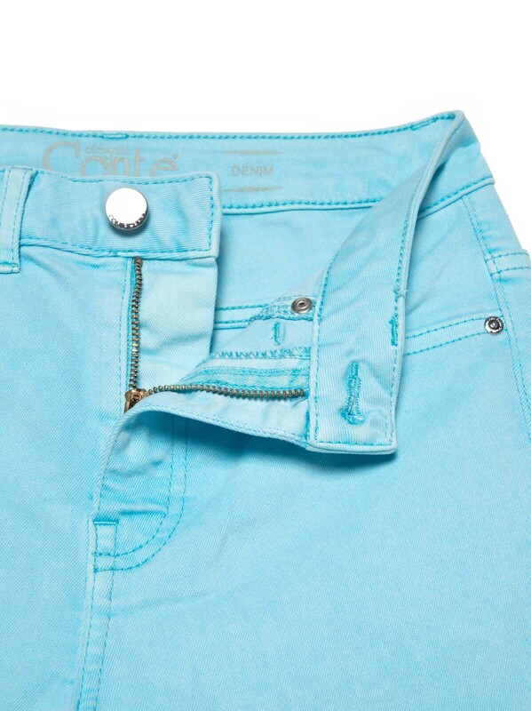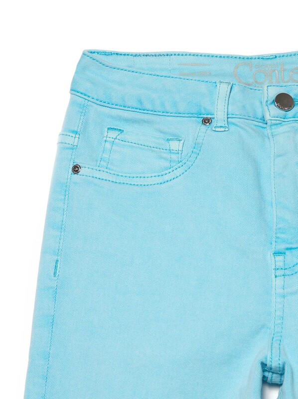Моделирующие цветные джинсы зауженного кроя с эффектом варки CON-219 соблазнительно подчеркивают фигуру, визуально удлиняют ноги и делают талию заметно тоньше. Несмотря на плотное облегание, джинсы дарят невероятный комфорт, легкость и свободу движений в течение дня. LYCRA-T400: инновационные нити LYCRA-T400 в составе денима гарантируют улучшенную цветоустойчивость и мгновенное восстановление формы джинсов после стирки.