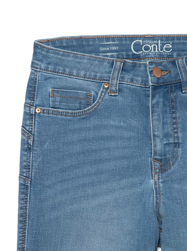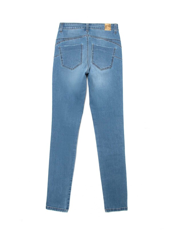 Благодаря специальной конструкции push-up моделирующие джинсы CON-143 соблазнительно подчеркивают фигуру и делают силуэт стройнее. Универсальная модель в классическим светло-голубом цвете подходит для повседневной носки и прекрасно сочетается с большинством вещей женского гардероба и обувью любого стиля. Мгновенная коррекция живота: особая конструкция передних карманов визуально корректирует животик и делает силуэт стройнее. Eco-friendly: при изготовлении этих джинсов применяются технологии, позволяющие использовать минимальное количество химикатов, сократить расходы воды и электроэнергии в процессе производства.