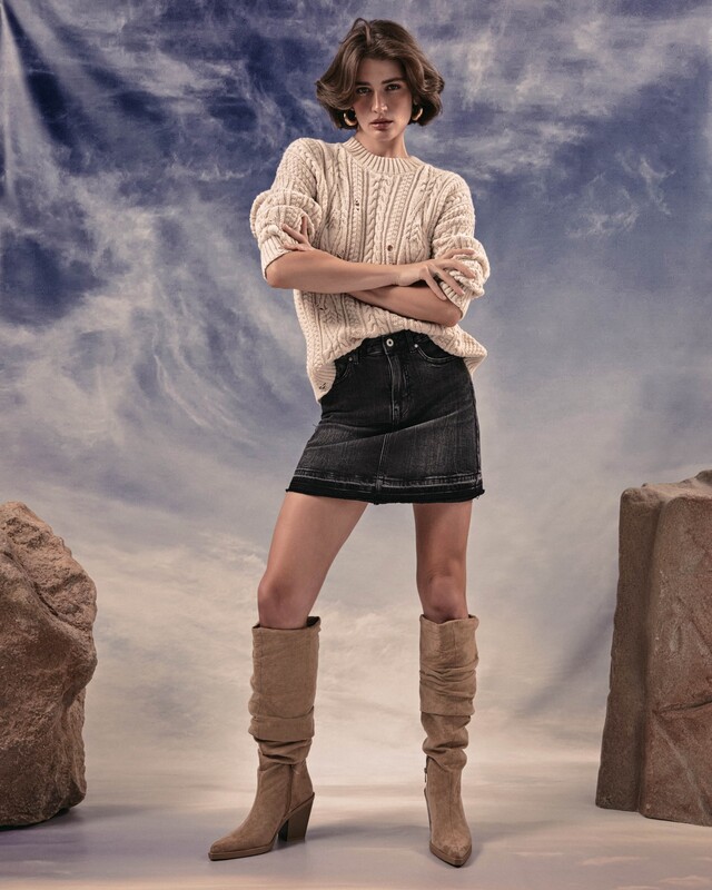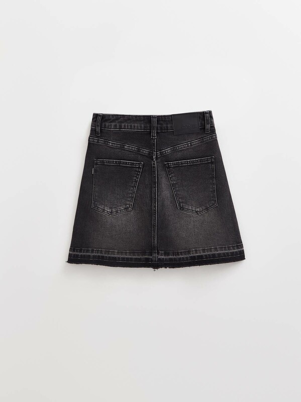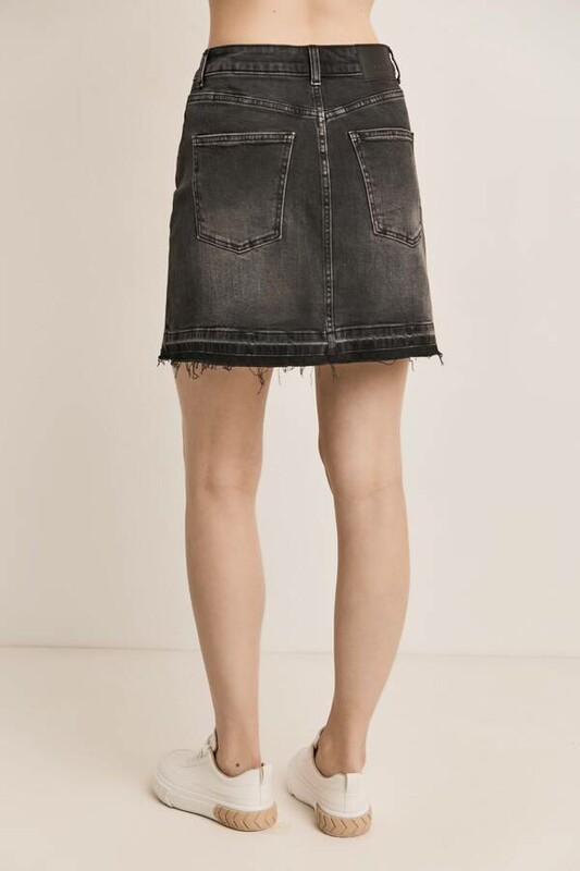 Модель разработана с максимальным вниманием к деталям: вы оцените А-силуэт, благодаря которому юбка безупречно садится по фигуре, эффект потертости и необработанный край.
