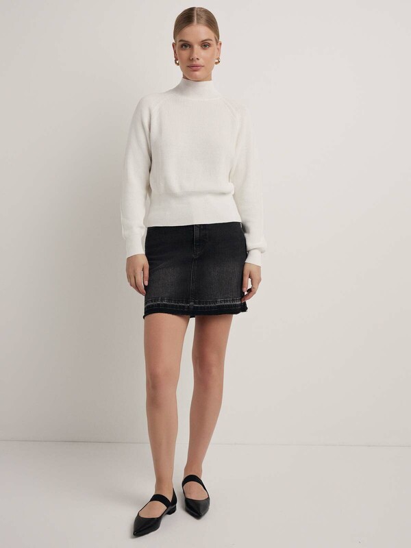 Джинсовая юбка-mini с высокой посадкой станет основой для множества индивидуальных образов и стильных идей.