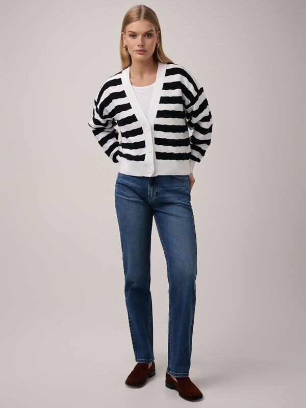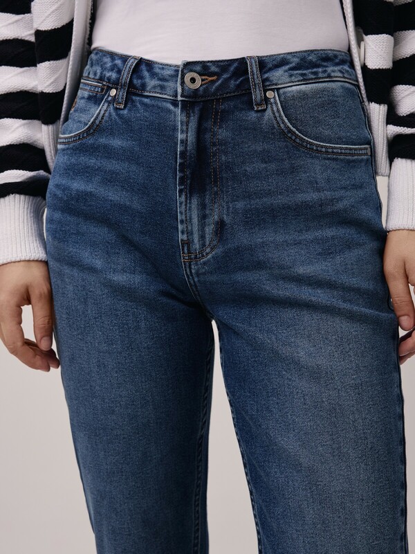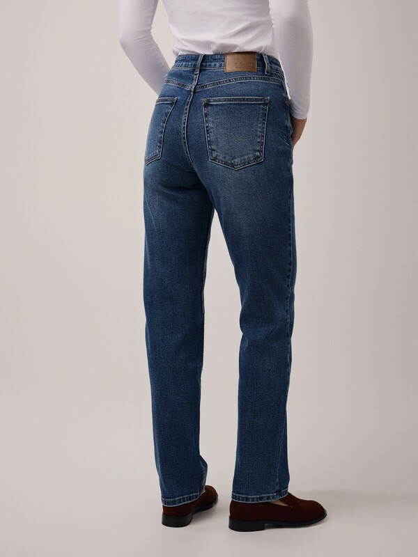 "Представляем вам джинсы в крое straight, в которых легко провести весь день, не чувствуя желания или необходимости переодеться. Eco-friendly: при изготовлении этих джинсов применяются технологии, позволяющие использовать меньше химикатов, воды и электроэнергии, чем при производстве традиционного денима. • высокая посадка, подчеркивающая талию • силуэт straight • застежка на пуговицу и молнию, скрытую планкой • модель с пятью карманами, на переднем прорезном кармане – вышивка логотипа бренда • мягкий eco-friendly деним с эффектом потертости • для сохранения формы джинсов и насыщенности оттенка соблюдайте рекомендации по уходу • джинсы, которые вы полюбите с первой примерки. Рост 164: длина по внутреннему шву 73 см. Рост 170: длина по внутреннему шву 78 см. Обратите внимание: джинсы, имеющие в составе ткани 1-2% эластана, устойчивы к многочисленным стиркам, прочные, удобные, хорошо садятся по фигуре. При носке ткань может растягиваться, но после стирки джинсы принимают первоначальный размер и форму. bumbac 99%, elastan 1%