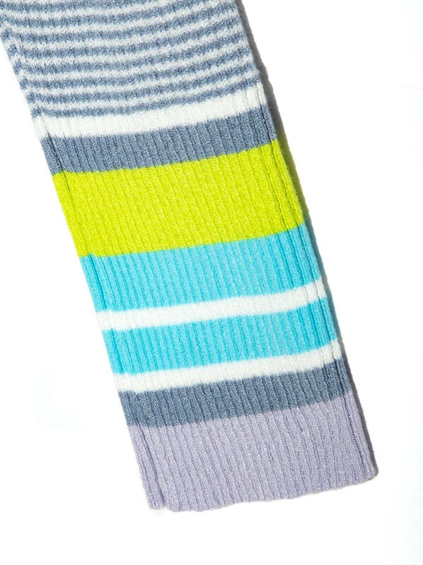 Ультрамодный джемпер облегающего силуэта выполнен из итальянской пряжи с высоким содержанием вискозы премиального качества. Ваш образ не останется без внимания: изюминку джемперу придают легкий глянец пряжи и рукава, низ которых связан горизонтальными полосами разных цветов. Джемпер легкий, мягкий, шелковистый на ощупь, поэтому он идеально дополнит ваш весенний гардероб. пан 49%, вискоза 49%, эластан 2%