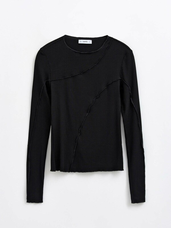 Джемпер в рубчик с декоративными швами по переду и рукавам поможет создать лаконичный, но при этом индивидуальный образ.
