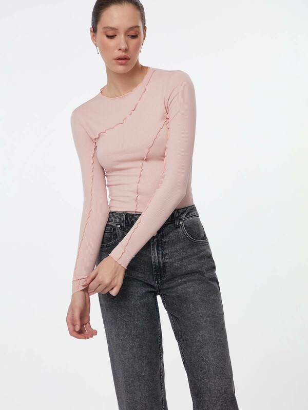 Джемпер в рубчик с декоративными швами по переду и рукавам поможет создать лаконичный, но при этом индивидуальный образ.