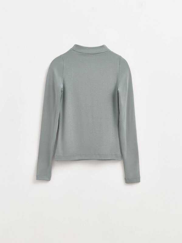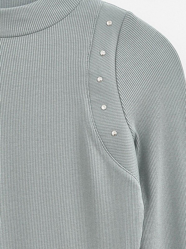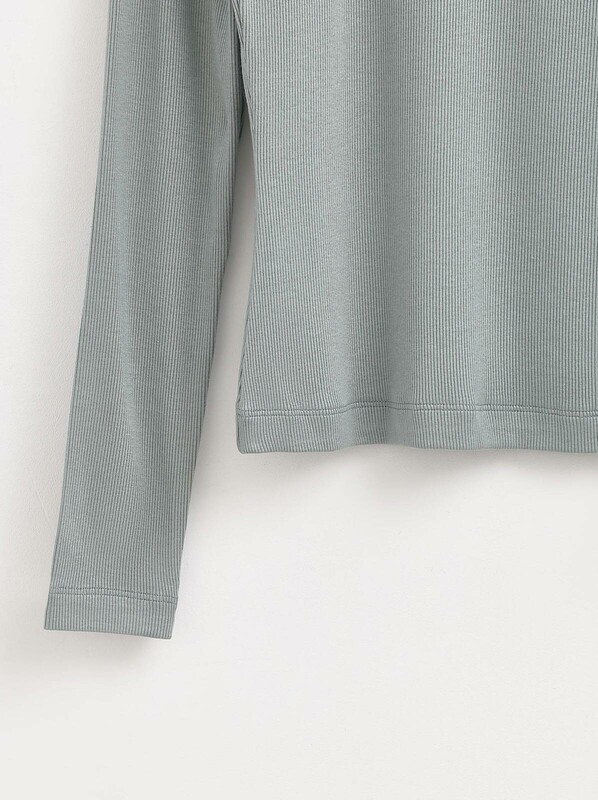 Джемпер из мягкого полотна с вискозой в рубчик создан, чтобы стать лаконичной основой ваших базовых образов. Модель легко сочетается с денимом, брюками и юбками. · невысокий воротник-стойка· длинные рукава· прилегающий силуэт· мягкий эластичный трикотаж с высоким содержанием вискозы· в рубчик· вставки с декоративными хольнитенами в области плеч · комфортная основа для ваших повседневных образов.