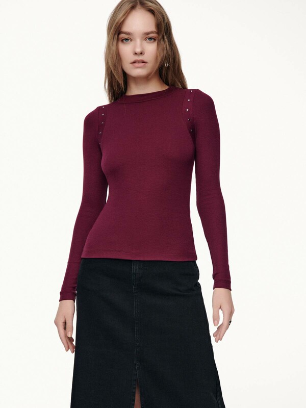 Джемпер из мягкого полотна с вискозой в рубчик создан, чтобы стать лаконичной основой ваших базовых образов. Модель легко сочетается с денимом, брюками и юбками. · невысокий воротник-стойка· длинные рукава· прилегающий силуэт· мягкий эластичный трикотаж с высоким содержанием вискозы· в рубчик· вставки с декоративными хольнитенами в области плеч · комфортная основа для ваших повседневных образов.