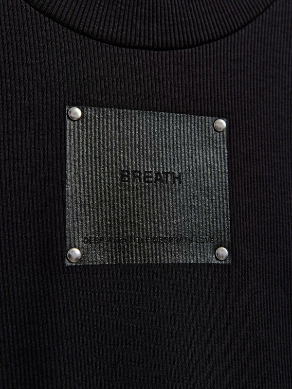 Джемпер из мягкого полотна с вискозой в рубчик создан, чтобы стать лаконичной основой ваших базовых образов. Модель легко сочетается с денимом, брюками и юбками. · невысокий воротник-стойка· длинные рукава· прилегающий силуэт· мягкий эластичный трикотаж с высоким содержанием вискозы· в рубчик· декоративные хольнитены и печатный рисунок «Breath» по переду· комфортная основа для ваших повседневных образов.