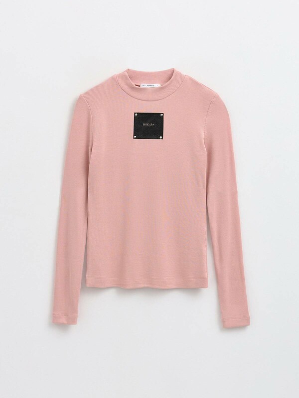 Джемпер из мягкого полотна с вискозой в рубчик создан, чтобы стать лаконичной основой ваших базовых образов. Модель легко сочетается с денимом, брюками и юбками. · невысокий воротник-стойка· длинные рукава· прилегающий силуэт· мягкий эластичный трикотаж с высоким содержанием вискозы· в рубчик· декоративные хольнитены и печатный рисунок «Breath» по переду· комфортная основа для ваших повседневных образов.