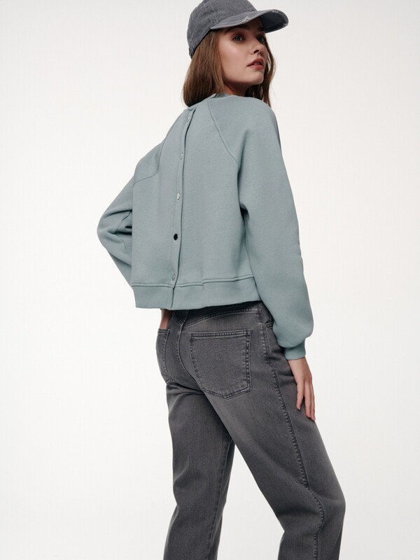 Свитшот на флисе сочетает в себе минимализм, оригинальные тенденции уличной моды и вашу абсолютную свободу в движениях. THERMAL COTTON: хлопковое полотно на флисе премиального качества обеспечивает согревающий эффект и надежно удерживает тепло на протяжении всего дня. · невысокая притачная планка в рубчик· длинные втачные рукава-реглан с манжетами в рубчик· классическая длина · по низу пояс в рубчик· свободный крой· по спинке выполнена панка с функциональными кнопками · хлопковое полотно на флисе· сохранение формы и цвета при соблюдении рекомендаций по уходу· минимализм и абсолютная свобода в лучших традициях уличной моды.