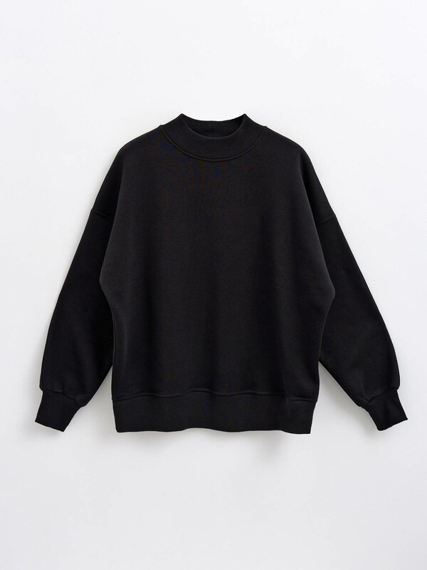 Свитшот на флисе со спущенной линией плеч и невысокой стойкой сочетает в себе минимализм, оригинальные тенденции уличной моды и вашу абсолютную свободу в движениях. THERMAL COTTON: хлопковое полотно на флисе премиального качества обеспечивает согревающий эффект и надежно удерживает тепло на протяжении всего дня. · невысокая притачная планка в рубчик· спущенная линия плеч· длинные втачные рукава с манжетами в рубчик · классическая длина· свободный крой· по спинке лаконичный печатный рисунок с логотипом бренда· хлопковое полотно на флисе· сохранение формы и цвета при соблюдении рекомендаций по уходу· минимализм и абсолютная свобода в лучших традициях уличной моды.