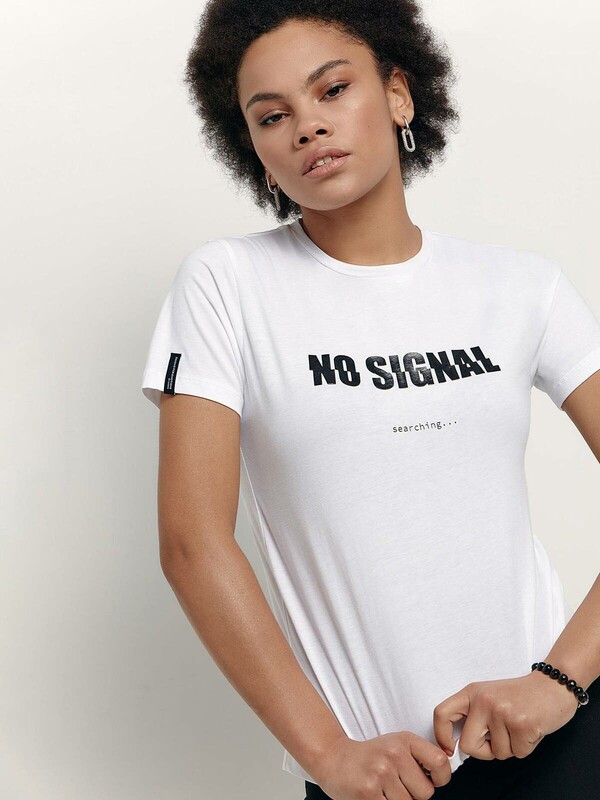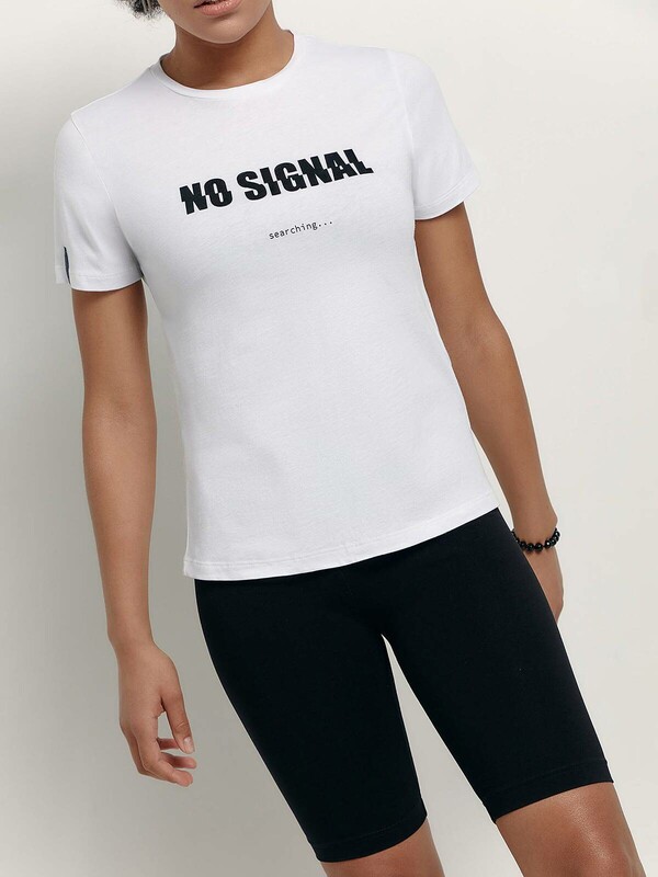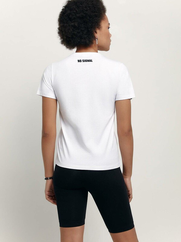 Базовая футболка прямого кроя «No signal» из мягкого хлопка сочетает в себе минимализм и оригинальные тенденции уличной моды. · прямой силуэт· круглый вырез горловины с планкой· короткие рукава c нашивкой «Designed for emotions»· объемный печатный рисунок «No signal»· мягкий 100% хлопок· устойчивый цвет и сохранение формы при соблюдении рекомендаций по уходу· стильная база для повседневных образов.