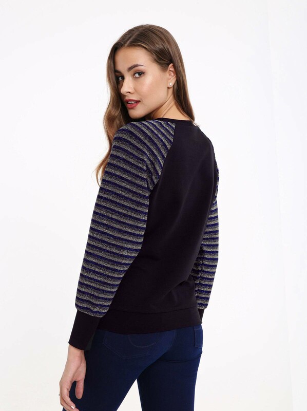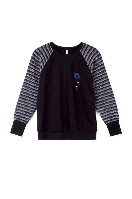 Блистать каждый день – модная миссия этого сезона! Вы с легкостью справитесь с этой задачей в новом теплом джемпере. Рукава «реглан» с отделкой люрексом очаруют вас металлическими полосами, а меховая брошь с оригинальной подвеской добавят вашему образу изюминку.