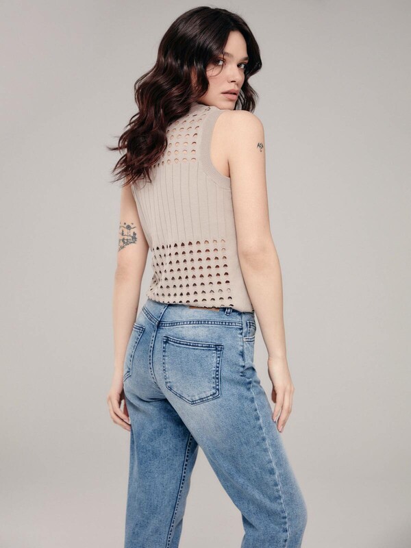 Джемпер без рукавов с ажурным переплетением и рубчиком LDK 194 станет источником вдохновения для множества стильных образов. Индивидуальный дизайн, безупречная посадка по фигуре и приятная мягкость пряжи – эта модель имеет все шансы станет любимой вещью для теплого сезона. SILK TOUCH VISCOSE: вискоза премиального качества с эффектом "прикосновение шелка" по своим свойствам повторяет натуральный шелк и дарит легкость, нежность и абсолютный комфорт на протяжении всего дня. · круглый вырез горловины · полуприлегающий силуэт· без рукавов· эластичный пояс в мелкий рубчик· стильное сочетание ажурного переплетения и крупного рубчика· пряжа с вискозой· металлическая пластинка с логотипом бренда· сохранение формы и цвета при соблюдении рекомендаций по уходу· создан, чтобы стать любимой вещью для теплого сезона.