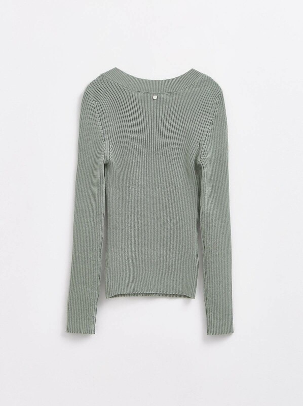 Облегающий джемпер в рубчик с фигурной линией декольте создан для лаконичных и соблазнительных повседневных образов. PREMIUM COTTON: хлопок премиального качества комфортный, приятный к телу и «дышащий». · фигурная линия декольте с декоративными бейками · длинные рукава· прилегающий силуэт· фактурное переплетение в рубчик· комфортная пряжа с хлопком· сохранение формы и цвета при соблюдении рекомендаций по уходу· создан для лаконичных и соблазнительных повседневных образов.