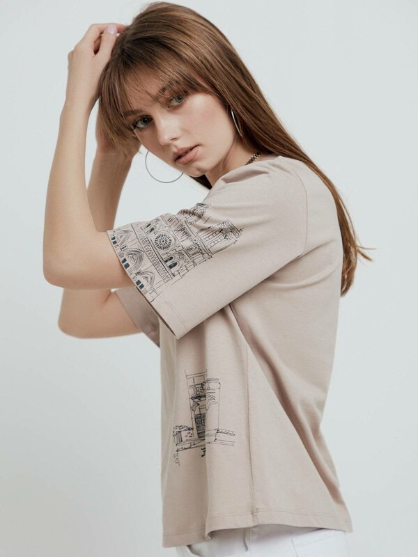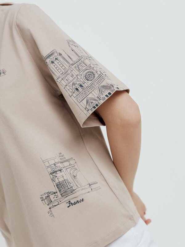 Oversize-футболка «Paris» станет основой для множества расслабленных базовых образов. · oversize· круглый вырез горловины с планкой в рубчик· рукава до локтя· печатный рисунок «Paris»· 100% хлопок· сохранение формы при соблюдении рекомендаций по уходу· создана для стильных расслабленных образов.